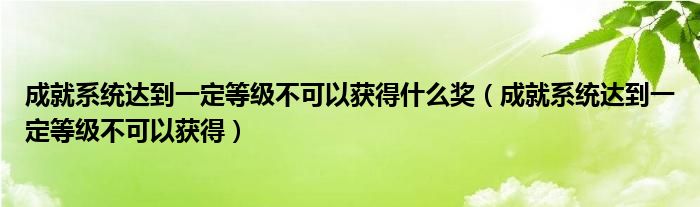 今天菲菲来为大家解答以上的问题。成就系统达到一定等级不可以获得什么奖,成就系统达到一定等级不可以获得相信很多小伙伴还不知道,现在让我们一起来看看吧!