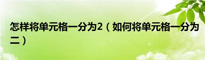 今天菲菲来为大家解答以上的问题。怎样将单元格一分为2,如何将单元格一分为二相信很多小伙伴还不知道,现在让我们一起来看看吧!