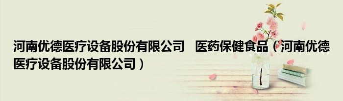 今天菲菲来为大家解答以上的问题。河南优德医疗设备股份有限公司 医药保健食品,河南优德医疗设备股份有限公司相信很多小伙伴还不知道,现在让我们一起来看看吧!