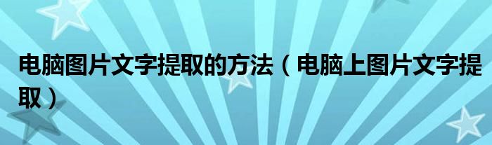 今天菲菲来为大家解答以上的问题。电脑图片文字提取的方法,电脑上图片文字提取相信很多小伙伴还不知道,现在让我们一起来看看吧!