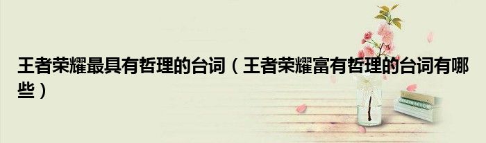 今天菲菲来为大家解答以上的问题。王者荣耀最具有哲理的台词,王者荣耀富有哲理的台词有哪些相信很多小伙伴还不知道,现在让我们一起来看看吧!