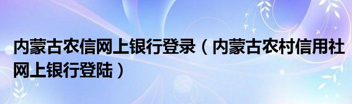 今天菲菲来为大家解答以上的问题。内蒙古农信网上银行登录,内蒙古农村信用社网上银行登陆相信很多小伙伴还不知道,现在让我们一起来看看吧!