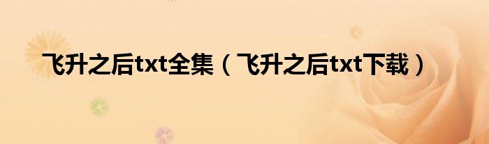 今天菲菲来为大家解答以上的问题。飞升之后txt全集,飞升之后txt下载相信很多小伙伴还不知道,现在让我们一起来看看吧!