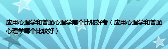 今天菲菲来为大家解答以上的问题。应用心理学和普通心理学哪个比较好考,应用心理学和普通心理学哪个比较好相信很多小伙伴还不知道,现在让我们一起来看看吧!