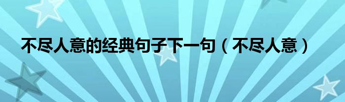 今天菲菲来为大家解答以上的问题。不尽人意的经典句子下一句,不尽人意相信很多小伙伴还不知道,现在让我们一起来看看吧!