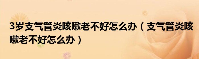 今天菲菲来为大家解答以上的问题。3岁支气管炎咳嗽老不好怎么办,支气管炎咳嗽老不好怎么办相信很多小伙伴还不知道,现在让我们一起来看看吧!