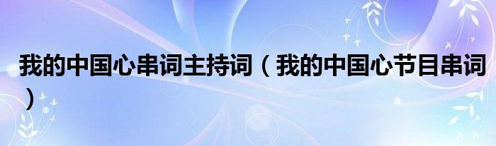3、下面请初二的同学一起来再次唱响《我的中国心》 《我的中国心》串词朗诵词2 20多年前那首脍炙人口的歌谣牵动了亿万中华儿女的心,时光飞逝,人事已非,但是仍挥不去凝结在我们心间的那颗火热至诚的中国心。