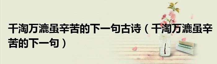 今天菲菲来为大家解答以上的问题。千淘万漉虽辛苦的下一句古诗,千淘万漉虽辛苦的下一句相信很多小伙伴还不知道,现在让我们一起来看看吧!