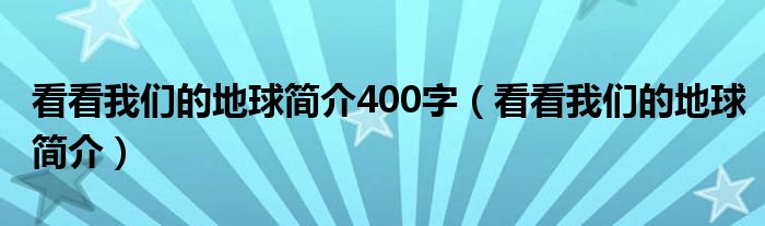今天菲菲来为大家解答以上的问题。看看我们的地球简介400字,看看我们的地球简介相信很多小伙伴还不知道,现在让我们一起来看看吧!