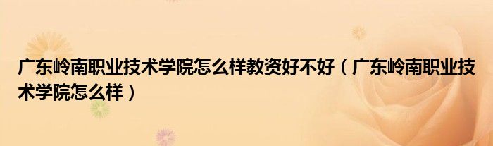 今天菲菲来为大家解答以上的问题。广东岭南职业技术学院怎么样教资好不好,广东岭南职业技术学院怎么样相信很多小伙伴还不知道,现在让我们一起来看看吧!