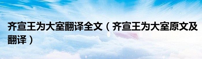 今天菲菲来为大家解答以上的问题。齐宣王为大室翻译全文,齐宣王为大室原文及翻译相信很多小伙伴还不知道,现在让我们一起来看看吧!