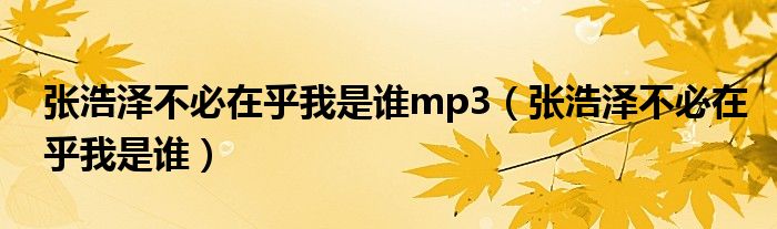 今天菲菲来为大家解答以上的问题。张浩泽不必在乎我是谁mp3,张浩泽不必在乎我是谁相信很多小伙伴还不知道,现在让我们一起来看看吧!