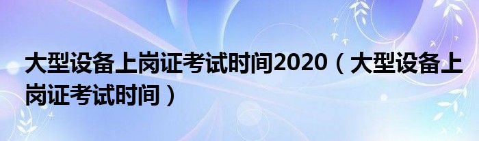 今天菲菲来为大家解答以上的问题。大型设备上岗证考试时间2020,大型设备上岗证考试时间相信很多小伙伴还不知道,现在让我们一起来看看吧!
