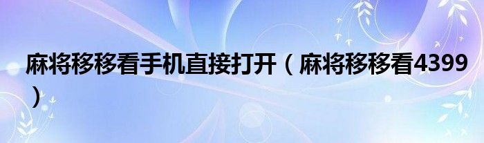麻将移移看手机直接打开(麻将移移看4399)!时间紧迫,求快速解答!