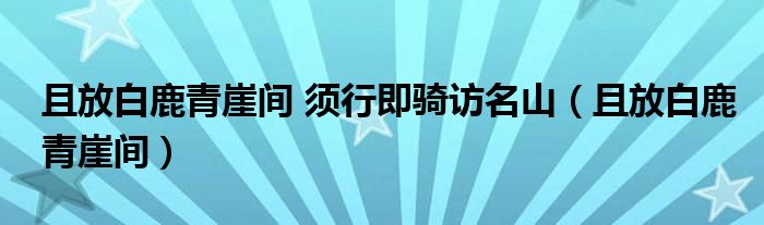 今天菲菲来为大家解答以上的问题。且放白鹿青崖间 须行即骑访名山,且放白鹿青崖间相信很多小伙伴还不知道,现在让我们一起来看看吧!