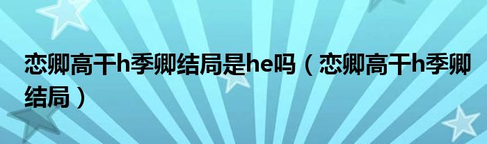 今天菲菲来为大家解答以上的问题。恋卿高干h季卿结局是he吗,恋卿高干h季卿结局相信很多小伙伴还不知道,现在让我们一起来看看吧!