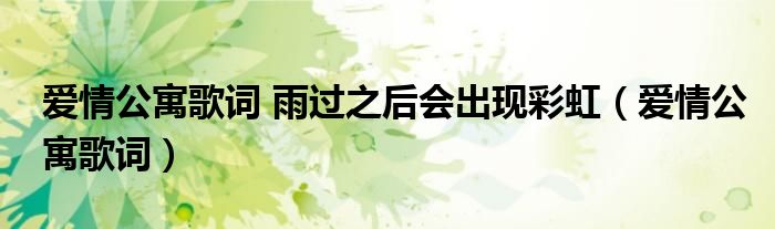 今天菲菲来为大家解答以上的问题。爱情公寓歌词 雨过之后会出现彩虹,爱情公寓歌词相信很多小伙伴还不知道,现在让我们一起来看看吧!
