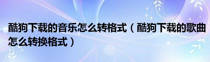 今天菲菲来为大家解答以上的问题。酷狗下载的音乐怎么转格式,酷狗下载的歌曲怎么转换格式相信很多小伙伴还不知道,现在让我们一起来看看吧!