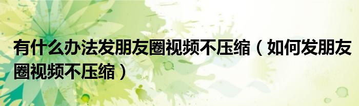 有什么办法发朋友圈视频不压缩(如何发朋友圈视频不压缩),真的急需答案,求回复!