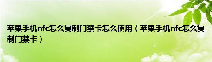 今天菲菲来为大家解答以上的问题。苹果手机nfc怎么复制门禁卡怎么使用,苹果手机nfc怎么复制门禁卡相信很多小伙伴还不知道,现在让我们一起来看看吧!