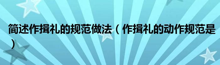 今天菲菲来为大家解答以上的问题。简述作揖礼的规范做法,作揖礼的动作规范是相信很多小伙伴还不知道,现在让我们一起来看看吧!