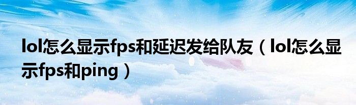 今天菲菲来为大家解答以上的问题。lol怎么显示fps和延迟发给队友,lol怎么显示fps和ping相信很多小伙伴还不知道,现在让我们一起来看看吧!