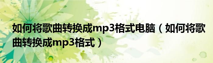 今天菲菲来为大家解答以上的问题。如何将歌曲转换成mp3格式电脑,如何将歌曲转换成mp3格式相信很多小伙伴还不知道,现在让我们一起来看看吧!