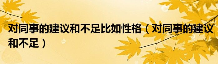 今天菲菲来为大家解答以上的问题。对同事的建议和不足比如性格,对同事的建议和不足相信很多小伙伴还不知道,现在让我们一起来看看吧!