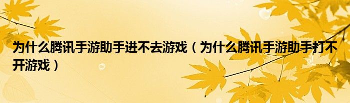 今天菲菲来为大家解答以上的问题。为什么腾讯手游助手进不去游戏,为什么腾讯手游助手打不开游戏相信很多小伙伴还不知道,现在让我们一起来看看吧!