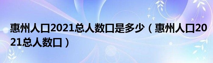 惠州人口2021总人数口是多少(惠州人口2021总人数口),求解答求解答,重要的事说两遍!