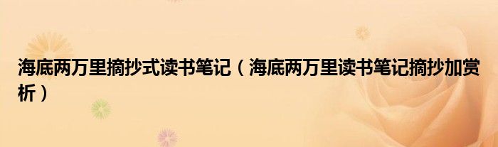今天菲菲来为大家解答以上的问题。海底两万里摘抄式读书笔记,海底两万里读书笔记摘抄加赏析相信很多小伙伴还不知道,现在让我们一起来看看吧!