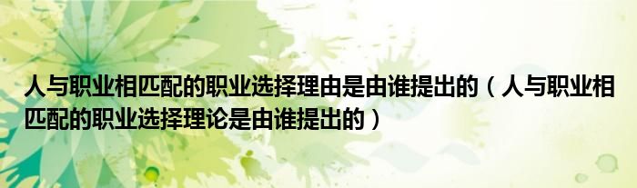 今天菲菲来为大家解答以上的问题。人与职业相匹配的职业选择理由是由谁提出的,人与职业相匹配的职业选择理论是由谁提出的相信很多小伙伴还不知道,现在让我们一起来看看吧!