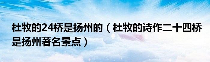 今天菲菲来为大家解答以上的问题。杜牧的24桥是扬州的,杜牧的诗作二十四桥是扬州著名景点相信很多小伙伴还不知道,现在让我们一起来看看吧!
