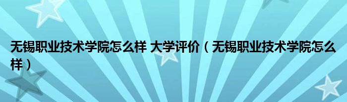 无锡职业技术学院怎么样 大学评价(无锡职业技术学院怎么样),在线求解答