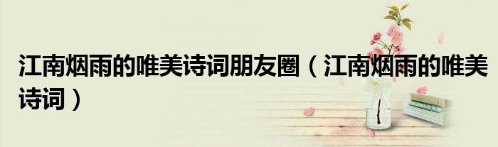 今天菲菲来为大家解答以上的问题。江南烟雨的唯美诗词朋友圈,江南烟雨的唯美诗词相信很多小伙伴还不知道,现在让我们一起来看看吧!