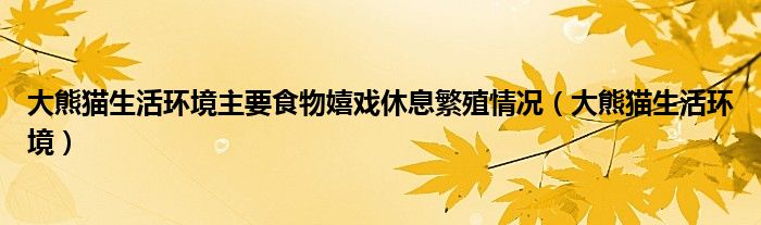 今天菲菲来为大家解答以上的问题。大熊猫生活环境主要食物嬉戏休息繁殖情况,大熊猫生活环境相信很多小伙伴还不知道,现在让我们一起来看看吧!