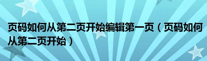 今天菲菲来为大家解答以上的问题。页码如何从第二页开始编辑第一页,页码如何从第二页开始相信很多小伙伴还不知道,现在让我们一起来看看吧!