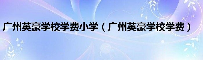 今天菲菲来为大家解答以上的问题。广州英豪学校学费小学,广州英豪学校学费相信很多小伙伴还不知道,现在让我们一起来看看吧!