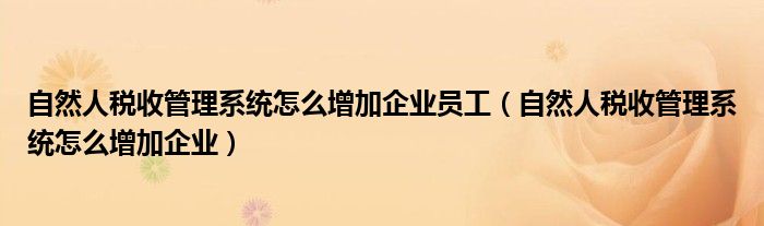 自然人税收管理系统怎么增加企业员工(自然人税收管理系统怎么增加企业)急求答案,帮忙回答下