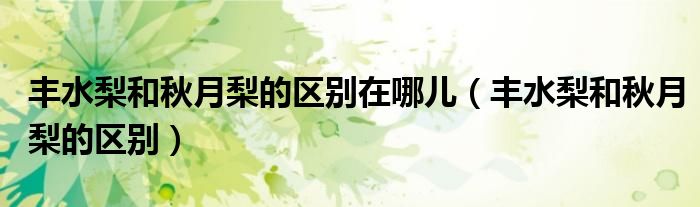 丰水梨和秋月梨的区别在哪儿(丰水梨和秋月梨的区别),蹲一个热心人,求不嫌弃我笨!