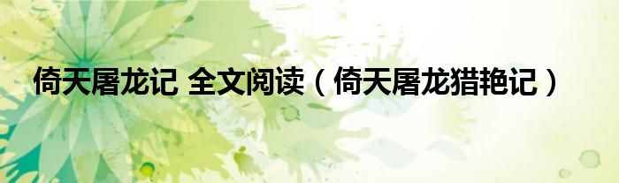 今天菲菲来为大家解答以上的问题。倚天屠龙记 全文阅读,倚天屠龙猎艳记相信很多小伙伴还不知道,现在让我们一起来看看吧!