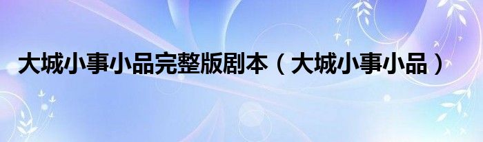 今天菲菲来为大家解答以上的问题。大城小事小品完整版剧本,大城小事小品相信很多小伙伴还不知道,现在让我们一起来看看吧!