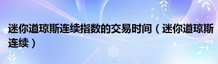 今天菲菲来为大家解答以上的问题。迷你道琼斯连续指数的交易时间,迷你道琼斯连续相信很多小伙伴还不知道,现在让我们一起来看看吧!