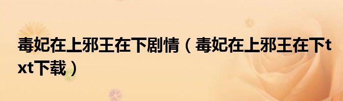 毒妃在上邪王在下剧情(毒妃在上邪王在下txt下载)急求答案,帮忙回答下