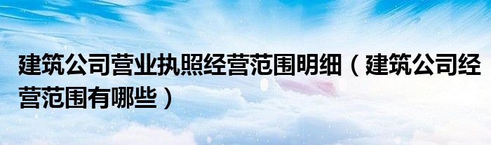 今天菲菲来为大家解答以上的问题。建筑公司营业执照经营范围明细,建筑公司经营范围有哪些相信很多小伙伴还不知道,现在让我们一起来看看吧!