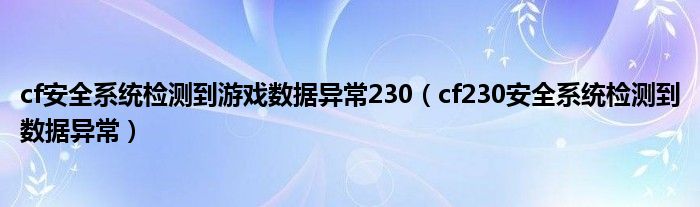 cf安全系统检测到游戏数据异常230(cf230安全系统检测到数据异常),快急哭了,求给个正确方向!