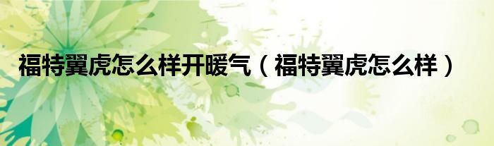 今天菲菲来为大家解答以上的问题。福特翼虎怎么样开暖气,福特翼虎怎么样相信很多小伙伴还不知道,现在让我们一起来看看吧!