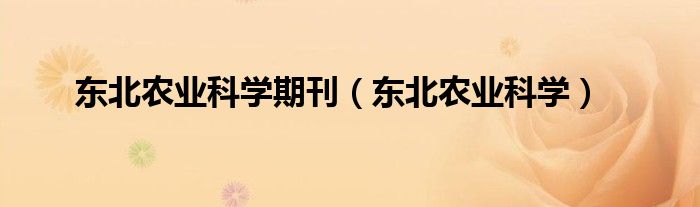 今天菲菲来为大家解答以上的问题。东北农业科学期刊,东北农业科学相信很多小伙伴还不知道,现在让我们一起来看看吧!