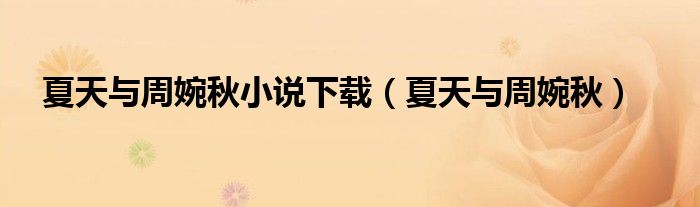 今天菲菲来为大家解答以上的问题。夏天与周婉秋小说下载,夏天与周婉秋相信很多小伙伴还不知道,现在让我们一起来看看吧!