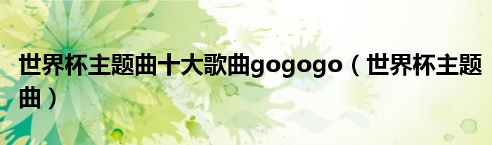今天菲菲来为大家解答以上的问题。世界杯主题曲十大歌曲gogogo,世界杯主题曲相信很多小伙伴还不知道,现在让我们一起来看看吧!